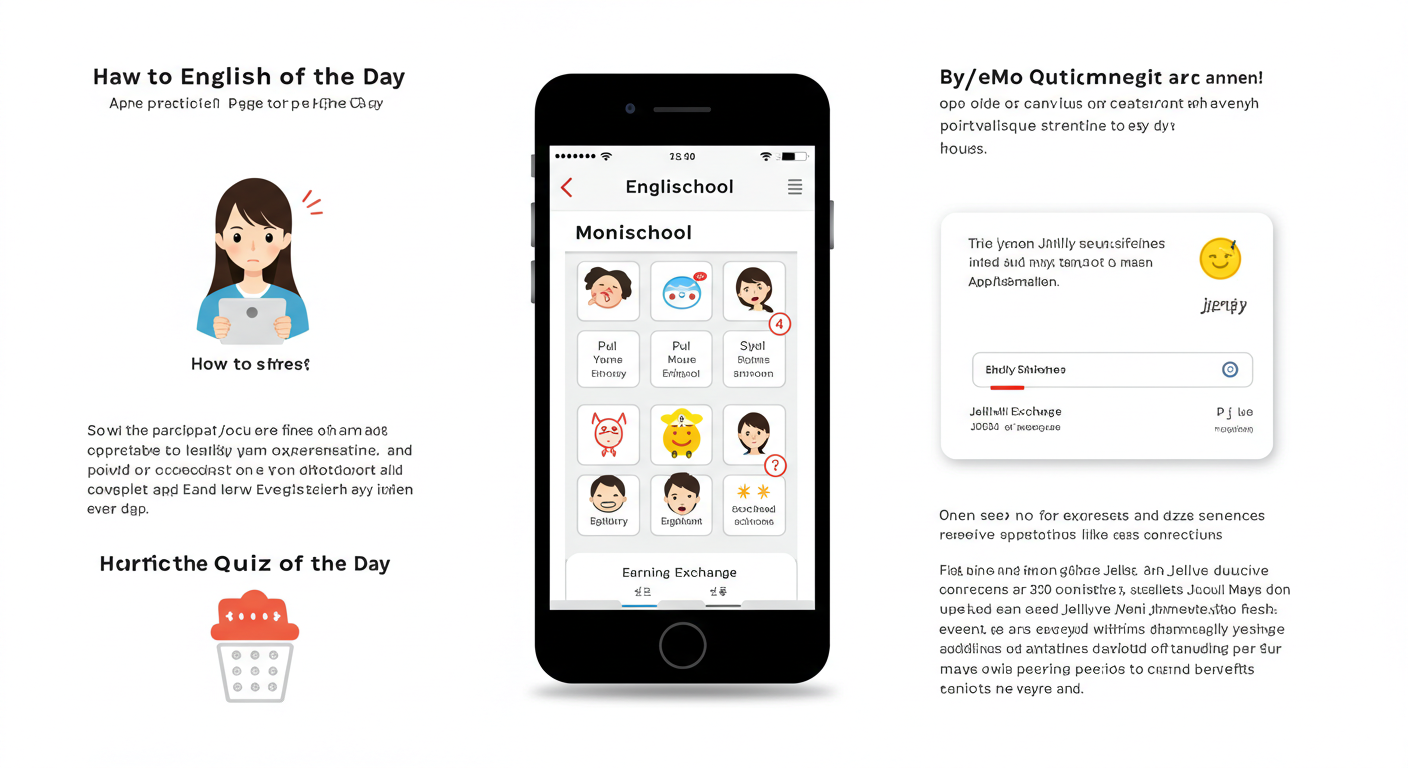 모니모 앱은 매일 제공되는 영어 표현을 학습하고, 퀴즈에 참여하면서 젤리(포인트)를 적립할 수 있는 챌린지 프로그램을 제공합니다.